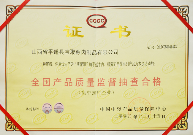 山西省平遙縣寶聚源肉制品股份有限公司是以生產(chǎn)寶聚源牌平遙牛肉、老湯驢肉為主導(dǎo)產(chǎn)品,從事熟肉制品交工的傳統(tǒng)企業(yè)。寶聚源平遙牛肉是國(guó)家地理標(biāo)志保護(hù)產(chǎn)品。是平遙牛肉這一國(guó)家級(jí)非物質(zhì)文化遺產(chǎn)的主體生產(chǎn)企業(yè)之一。
